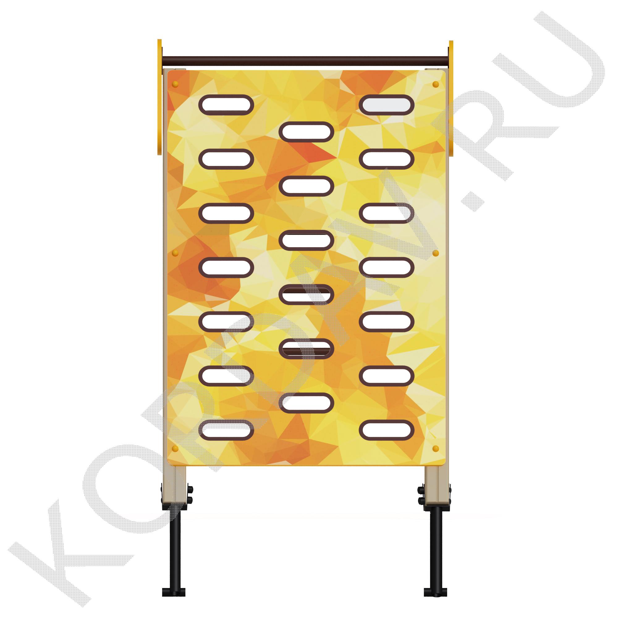 Стенка для перелезания – панель прямоугольной формы, которая закреплена двумя стойками парного типа. Она имеет двадцать полукруглых прорезей, очень удобных для ног. Стенка помогает детям развить ловкость и координацию, а также учит преодолевать препятствия. Ею могут пользоваться малыши возрастом от 3 лет. Благодаря небольшой высоте, ею пользоваться безопасно. Все детали защищены специальным покрытием, и устойчивы к износу и негативным внешним явлениям.